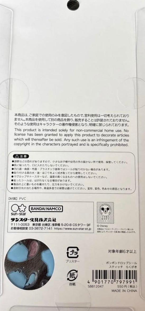 リロアンドステッチ ボンボンドロップシール